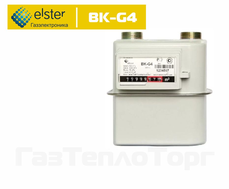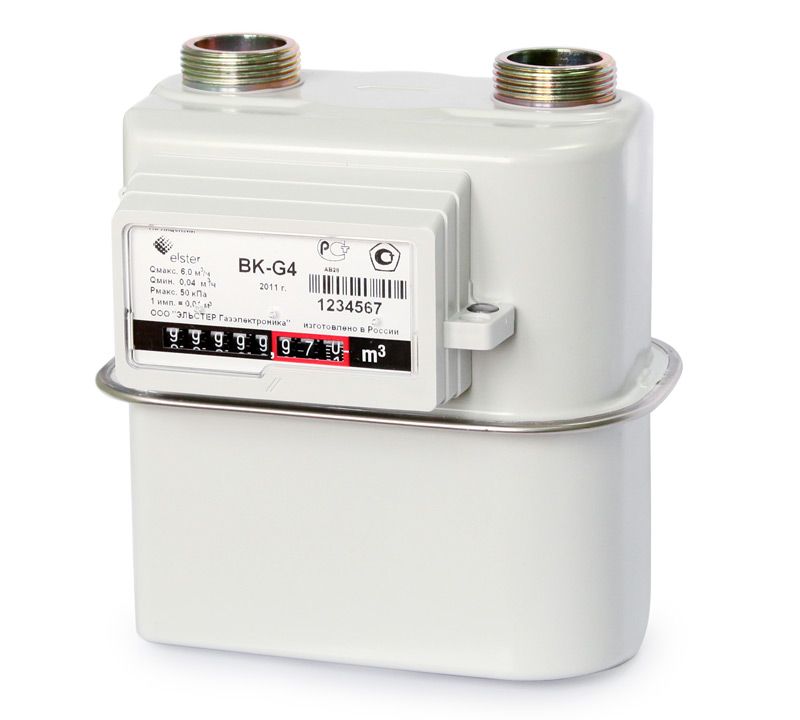 Газовый счетчик BK-G4 - является бытовым диафрагменным счетчиком газа. Счетчик G4 предназначен для учёта количества потребляемого газа в диапазоне пропускной способности 0,04 – 6 м³/ч. Как правило, счетчик с данной пропускной способностью рекомендуют, если в доме используют газовую плиту и котел отопления.