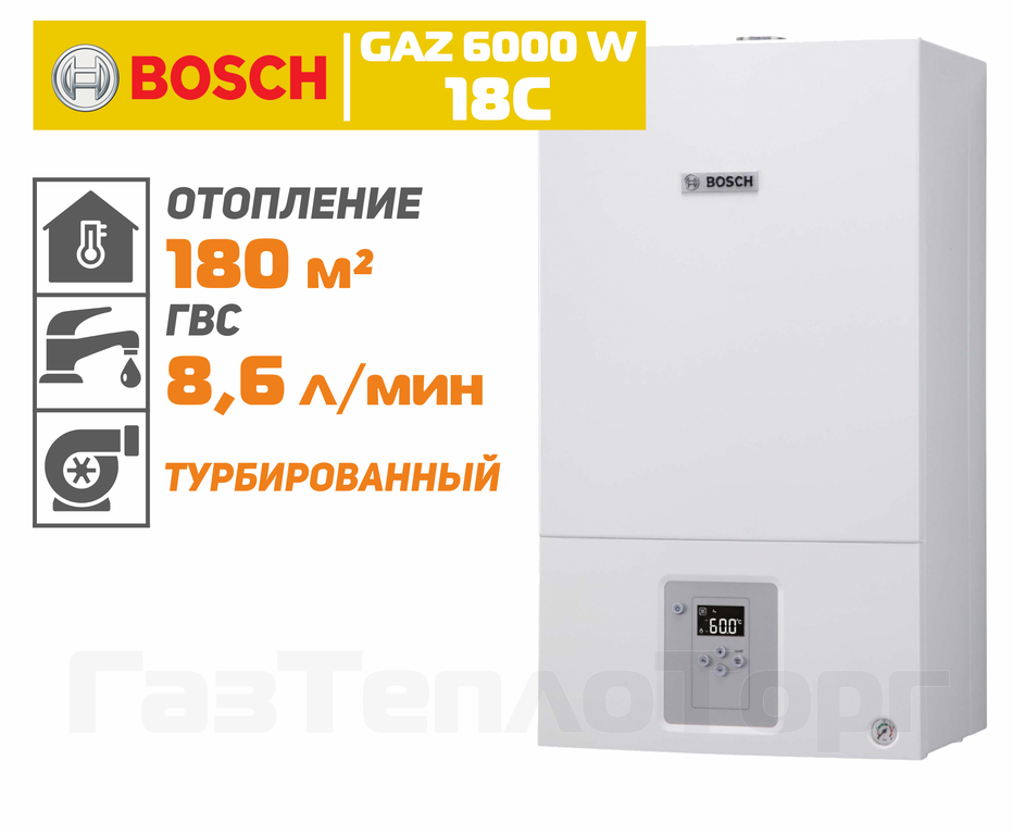 Настенные газовые котлы Bosch (Бош) серии GAZ 6000 W — современные, экономичные и надежные отопительные аппараты с принудительным отводом продуктов сгорания, разработанные специально для российских условий. Эта модель выделяется высоким качеством, доступной ценой и наличием запасных частей во всех регионах РФ. Котел неприхотлив к перепадам давления газа и напряжения в электросети.