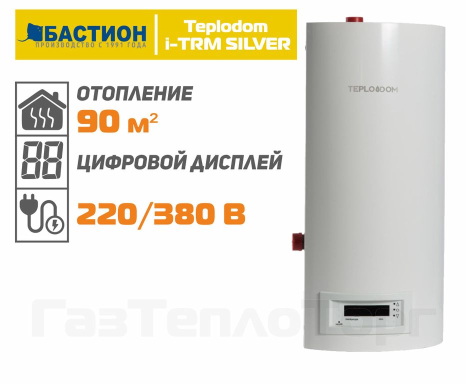 Teplodom i-TRM SILVER 9 кВт — электрический котел для отопления жилых помещений площадью до 90 м². Электрокотлы компании Бастион отличаются высоким стандартом качества, набором уникальных функций и решений, не имеющих аналогов на рынке.